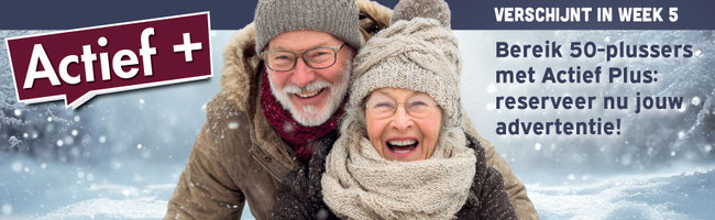 In week 5 verschijnt de special Actief Plus in een handzaam en aantrekkelijk formaat. Deze editie is volledig afgestemd op de actieve 50-plusdoelgroep: betrokken, nieuwsgierig en koopkrachtig. Lezers worden meegenomen in een inspirerende mix van onderwerpen rondom gezondheid, familie, vrije tijd en lifestyle, gecombineerd met praktische tips en aantrekkelijke aanbiedingen.